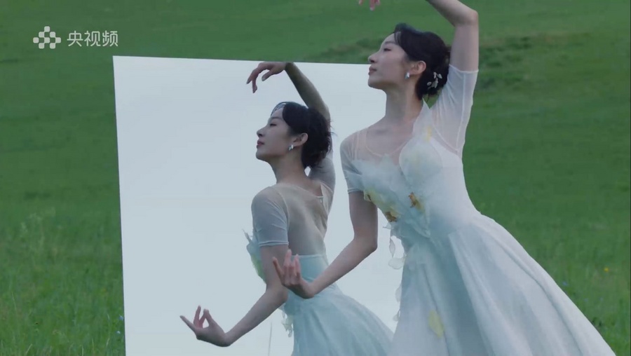 在芍药谷,舞者用精心编排的舞蹈动作模拟出芍药花的盛放过程,独特运镜设计让人、舞蹈、自然风光融为一体;在野狼谷,舞者与狼群共舞,充满力量感的蒙古族舞蹈将与狼共生的男儿血性展现得淋漓尽致;在马鬃山,舞者在嶙峋的山石间腾挪跳跃,呈现人与自然环境间的相互依存、影响;在九曲湾、白桦林及渔村杨树林、贺斯格淖尔,舞者们也用舞姿诉说着富有戏剧张力和强烈情感共鸣的草原故事。