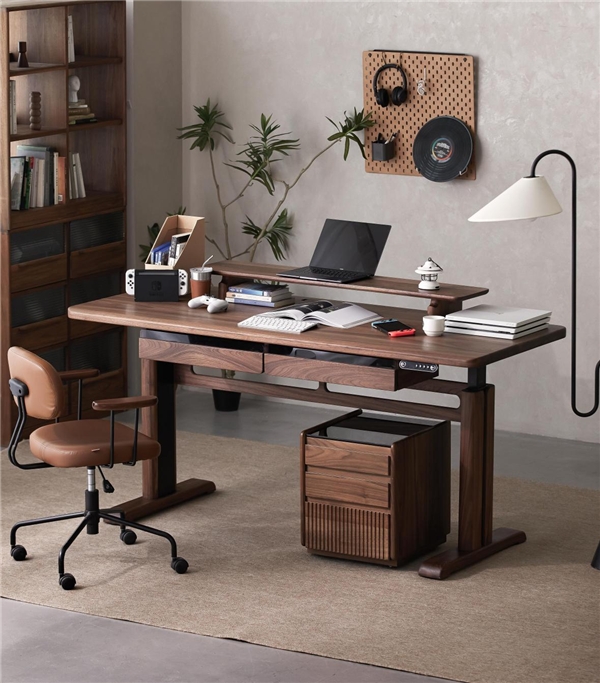 兼顾黑胡桃木原木美感与舒适体验,为普通书桌注入升降科技动力