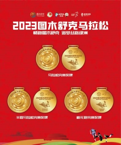 山水林田湖草沙·活力之城逐梦跑,2023图木舒克马拉松9月30日鸣枪开跑,,随着时间的临近,完赛奖牌、参赛服装、参赛包也是时候跟大家见面啦!