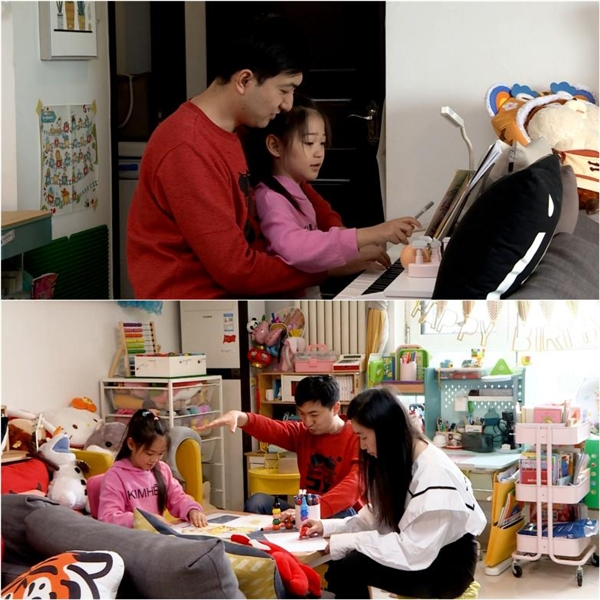 本期节目中,第一组家庭的小女孩和父母无话不谈,常常分享自己遇见的趣事,也偶尔会倾诉烦恼,和父母交流解决办法。不仅如此,她还是爸爸妈妈的“小闹钟”和“家庭教师”,每天按时叫他们起床,教导爸爸弹钢琴,监督父母学习......