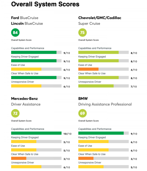 福特BlueCruise蓝智驾获得了综合评分84分的最佳成绩