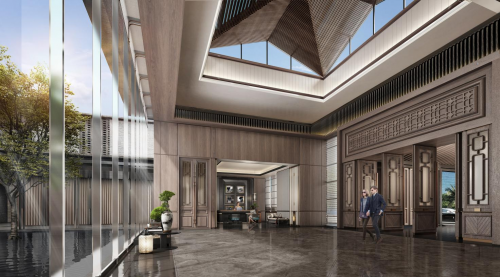 位于酒店中轴线上的大堂和大堂吧以岭南建筑格局为核心,将中国红的品牌主色调融入代表当地特色的花窗、茶几等元素当中,利用窗外景观与充足的自然光,在为宾客提供尊享体验的同时,构建出极具现代美学的空间场所。