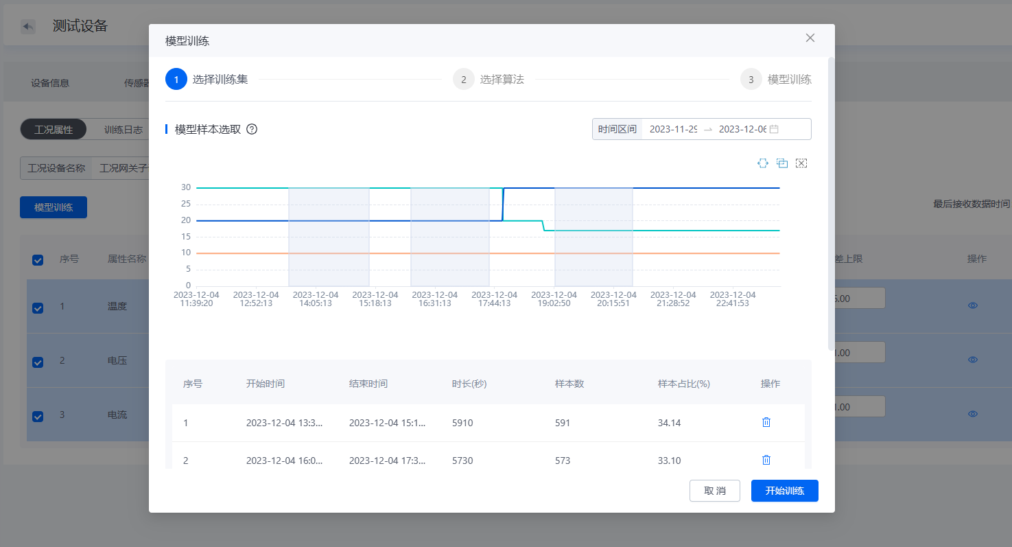新增设备模型工况数据模型训练功能: