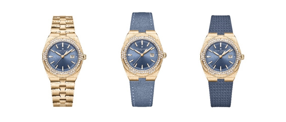●一款腕表,三面魅力——新作配备可快速替换的粉红金表链、丹宁蓝色小牛皮表带和橡胶表带及表扣