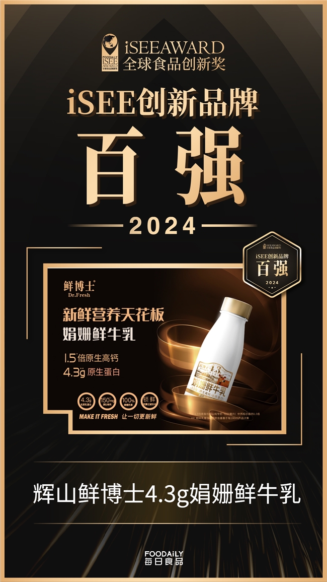 iSEE全球奖作为食品饮料行业的权威领先奖项,一直以“彰显食品创新精神,让好的产品被更多人看见”为使命,倡导“全球标准+第三方专业评审+非商业化”的评选标准,发现、表彰、传播全球“创新”与“美味”标杆,赋能食品产业创新发展。凭借优秀的产品品质和独特的创新理念,辉山牛奶旗下产品多炫冰淇淋酸奶系列和鲜博士4.3g娟姗鲜牛乳,从一众海内外创新品牌中脱颖而出,成功跻身iSEE创新品牌百强行列,并晋级iSEE全球食品创新奖终审。