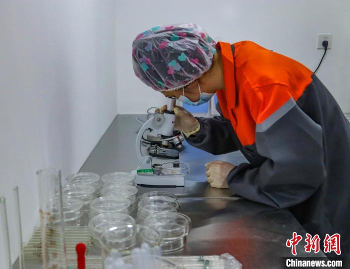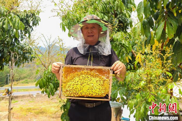 图为工人查看蜂箱的蜂蜜。张海斌 摄