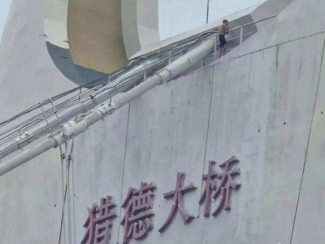 4月22日上午,一名男子爬上广州猎德大桥顶部,导致高峰期间猎德大桥一度实施交通管制。据市民提供的现场图片显示,一男子待在桥顶部,桥面上公安、消防等均已抵达,现场拉起警戒线。多名网友表示,在猎德大桥路段遭遇拥堵。