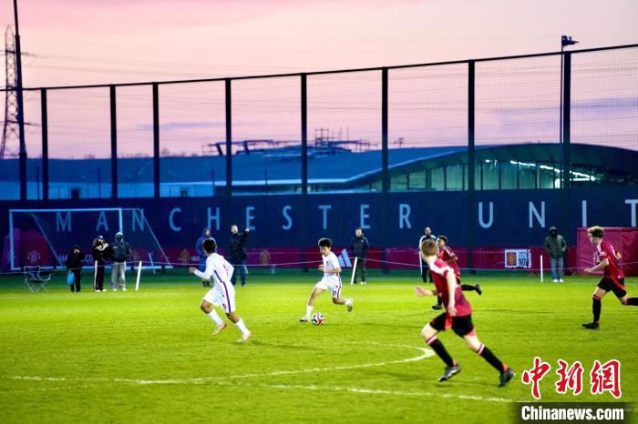 3月19日至4月10日,“U-15国家男子足球选拔队”(简称“U15国少选拔队”)在英国展开为期3周的足球训练营活动。图为U15国少选拔队与曼联青训队进行友谊赛。(香港赛马会供图)