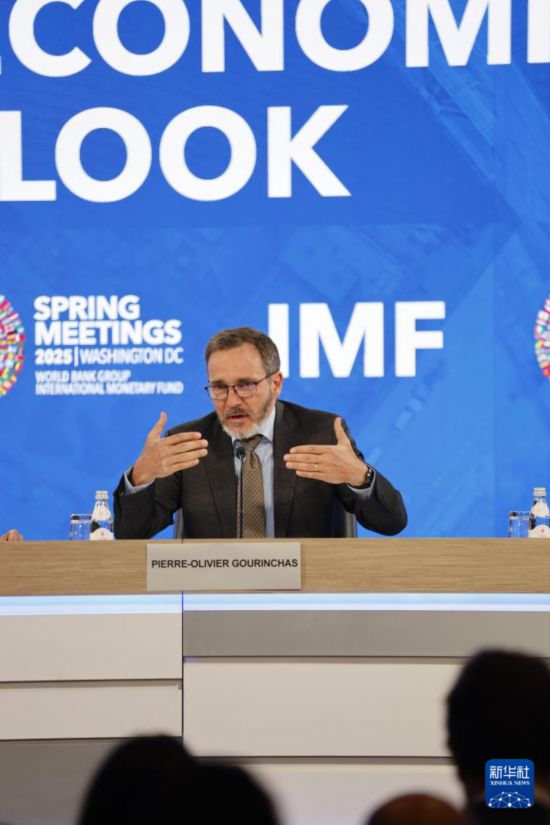 4月22日,在美国华盛顿,国际货币基金组织(IMF)首席经济学家皮埃尔-奥利维耶·古兰沙出席《世界经济展望报告》新闻发布会。新华社记者 谢锷 摄