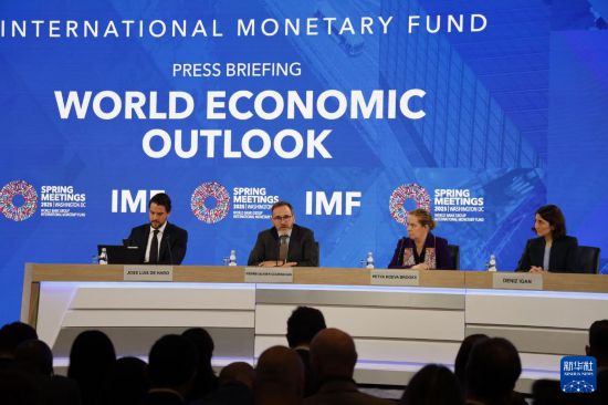 4月22日,国际货币基金组织(IMF)在美国华盛顿举行《世界经济展望报告》新闻发布会。新华社记者 谢锷 摄