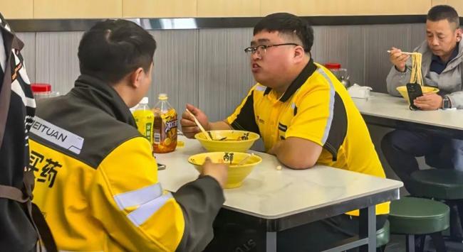 张景海的面店在这一带已小有名气,备受骑手们好评。他不仅面向骑手提供价格实惠的套餐,还贴心地为骑手们准备免费热水和歇脚的地方。