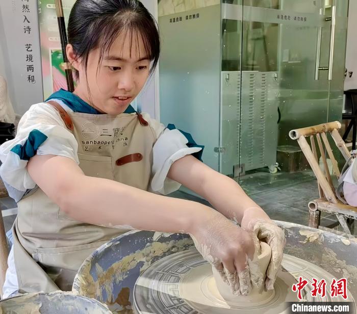 陈钰涵在江西景德镇体验陶艺。受访者供图