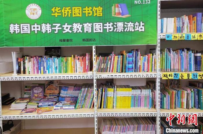 4月26日,“华侨图书馆韩国中韩子女教育图书漂流站”揭牌仪式在韩国首尔举行。图为图书漂流站一角。中韩子女教育协会 供图