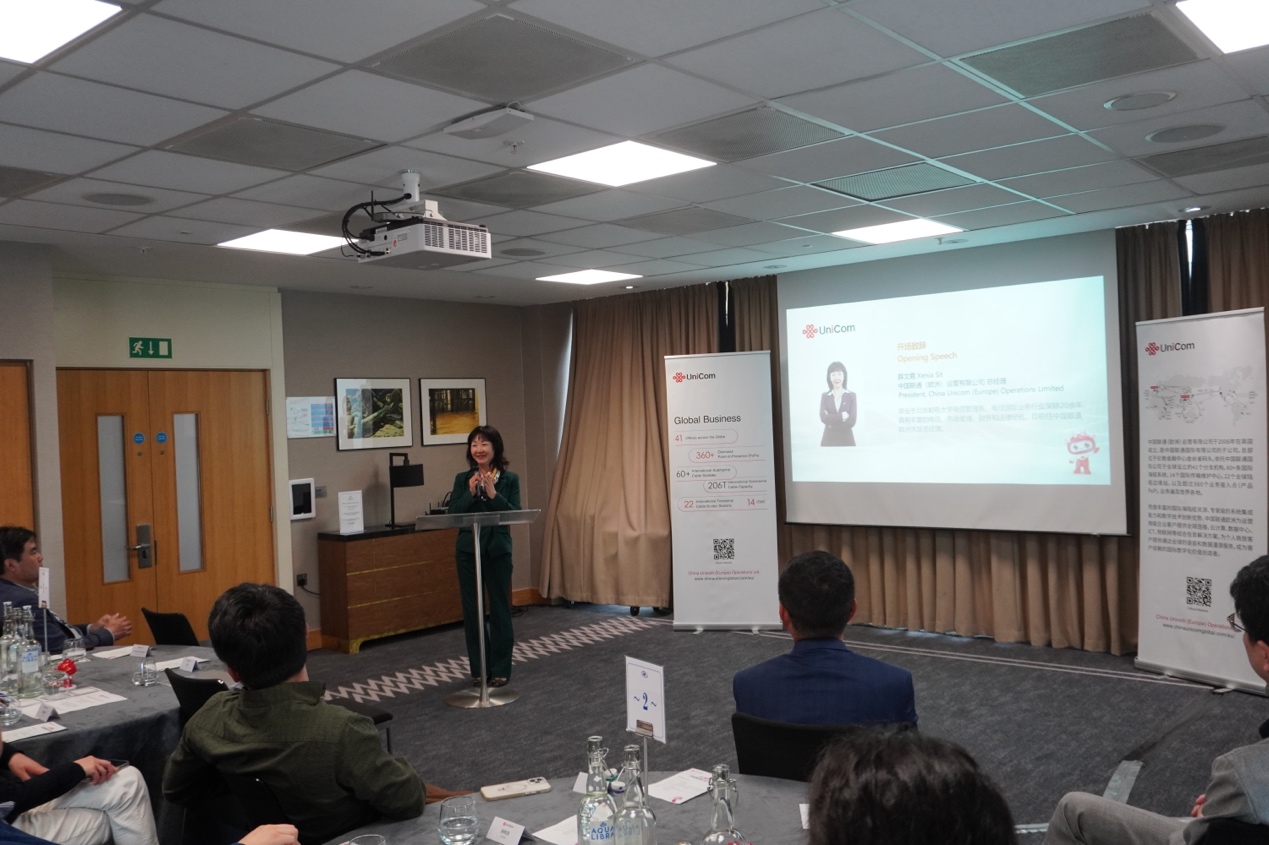 中国联通欧洲大区总经理薛文霞介绍联通在欧洲的发展规划。活动主办方供图