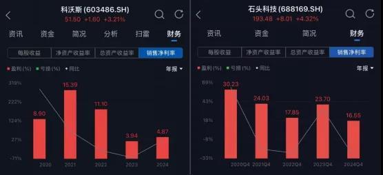 然而,通过与同行业企业进行横向对比,科沃斯销售净利率偏低的问题便显露无遗。这一关键财务指标的差距,直观反映出其在产品定价策略、成本管控效能以及费用管理精细化程度等方面,与同行企业仍存在明显差距。2024年,科沃斯销售净利率仅为4.87%,虽较2023年有小幅回升,但对比2021年15.39%的高位缩水幅度达68.3%。反观其竞争品牌石头科技,2024年在实现净利润19.77亿元的情况下,销售净利率高达16.55%。