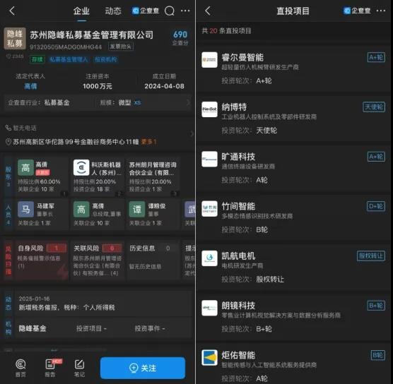 去年4月,科沃斯还与投资人高倩成立苏州隐峰私募基金管理有限公司,主要投资方向为机器人和人工智能。近日科沃斯公告称,计划出资不超过2亿元参与投资设立苏州隐峰揽秀创业投资合伙企业(有限合伙),认缴出资比例为40%。