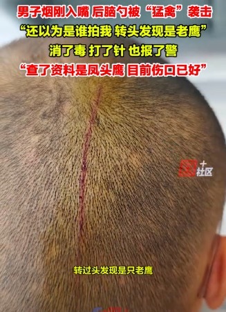 男子路边抽烟后脑勺被老鹰袭击:头剧痛,已打针,并报警
