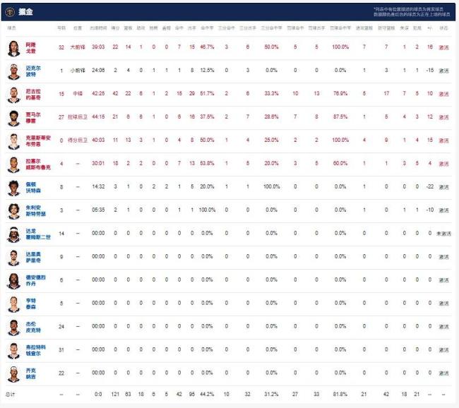 雷霆方面,亚历山大贡献33分、10个篮板和8次助攻,卡鲁索拿下20分、1个篮板和6次助攻,杰伦-威廉姆斯得到16分、7个篮板和4次助攻。掘金方面,约基奇砍下42分、22个篮板和6次助攻,贾马尔-穆雷贡献21分、6个篮板和6次助攻,戈登则有22分和14个篮板入账。