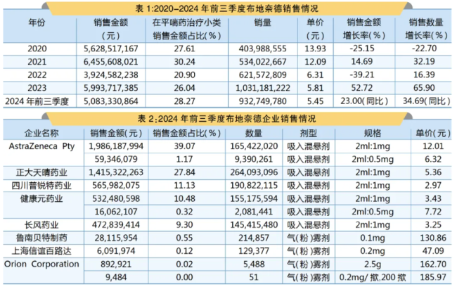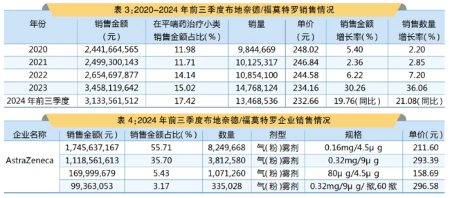 PDB数据显示,在2024年前三季度,国内全渠道布地奈德/福莫特罗制剂销售额为31.34亿元。