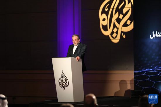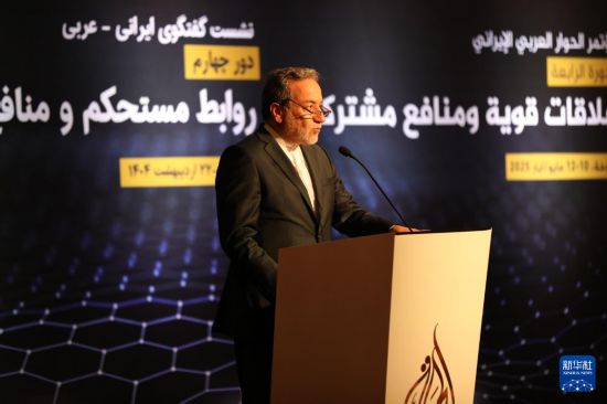 5月10日,伊朗外长阿拉格齐在卡塔尔多哈出席第四届阿拉伯-伊朗对话会议时讲话。新华社发(主办方供图)