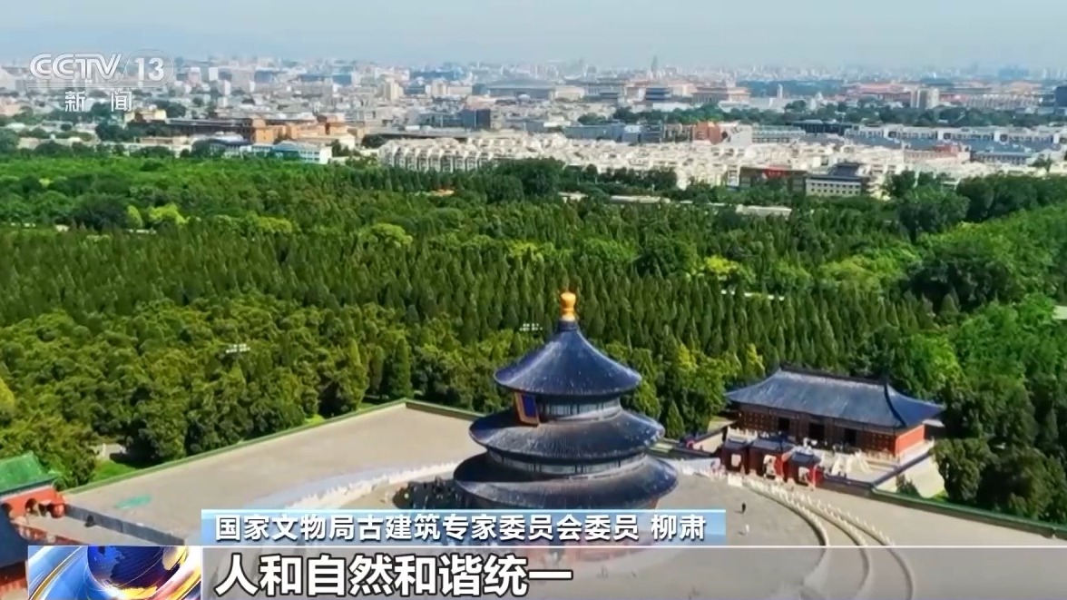 国家文物局古建筑专家委员会委员 柳肃:古代人认为天像一个穹顶,把地罩在下面。建筑中最明显的体现就是天坛所有建筑都是圆的。我们古代的哲学认为人是顺应天的,天人合一,道法自然,人和自然和谐统一。