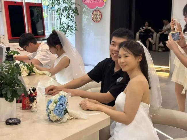 5月10日,修订后的《婚姻登记条例》正式施行。当天北京全市婚姻登记预约1700余对,其中涉及“全国通办”业务的约900对,较以往周末预约量有较大提升。北京市西城区婚姻登记处迎来了全市首对婚姻登记“全国通办”新人。上海市17个婚姻登记机关共办理婚姻登记1673对,其中“全国通办”462对,占全市登记总量的27.6%,惠及29个省、自治区、直辖市的当事人。江苏有1370对新人甜蜜领证,其中237对新人为“全国通办”。深圳累计办理婚姻登记业务439对,其中双方均非深圳户籍的149对。成都市23个区(市)县全覆盖开展延时服务,29个延时登记点共办理婚姻登记746对。