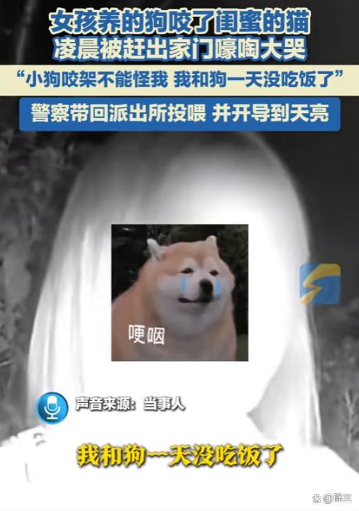 大半夜的,姑娘抱着狗在街上晃悠,这事放在谁身上都会寒心。姑娘跟警察诉苦:“狗打架又不是我的错,我跟狗都饿了一天了。”这才发现姑娘身无分文,吃穿用度全靠闺蜜。