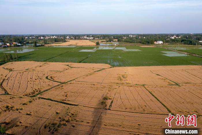 图为俯瞰稻麦同框。(无人机照片)周旭 摄