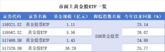 黄金股ETF投资于黄金及贵金属产业链上市公司股票(如紫金矿业、山东黄金),涵盖开采、冶炼、零售等环节,属于权益型ETF,目前市面上黄金股ETF均跟踪SSH黄金股票指数。