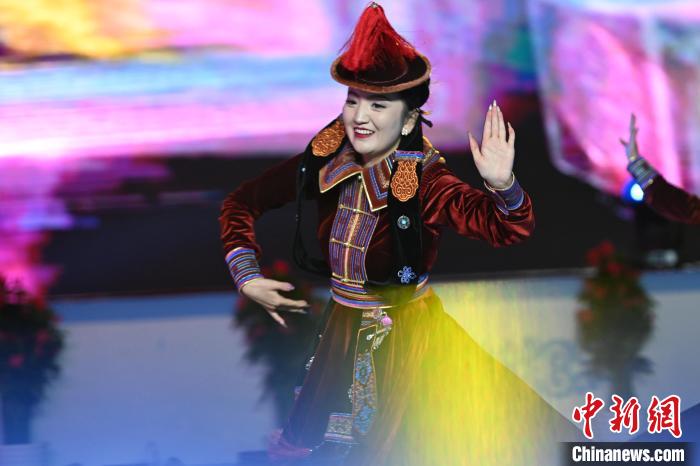 图为演员现场展示蒙古族舞蹈。中新社记者 李亚龙 摄