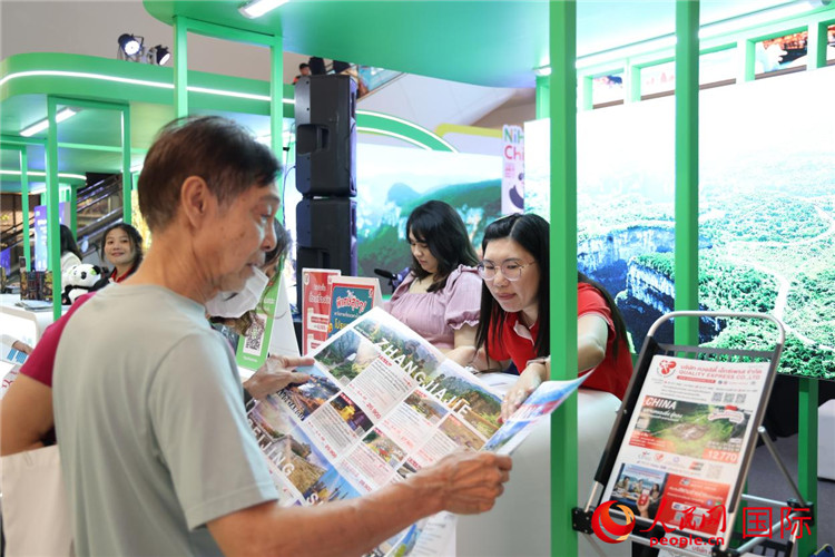 泰国民众在活动所设展台了解湖南张家界旅游信息。人民网记者 杨一摄