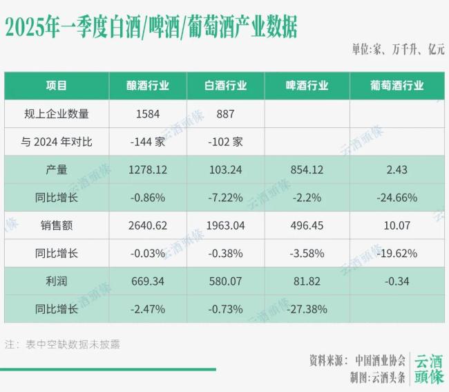 5月12日,中国酒业协会在战略发展工作委员会专家座谈会上公布2025年一季度酒业主要指标。