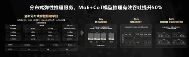 这背后,CloudMatrix 384还实现了性能倍增(训推提升20%)、以存强算(吞吐量提升100%)、MoE亲和(千亿MoE提升3X)、长稳可靠(长稳运行40天不中断)、朝推夜训(算力利用率提升30%)、即开即用六大特性。