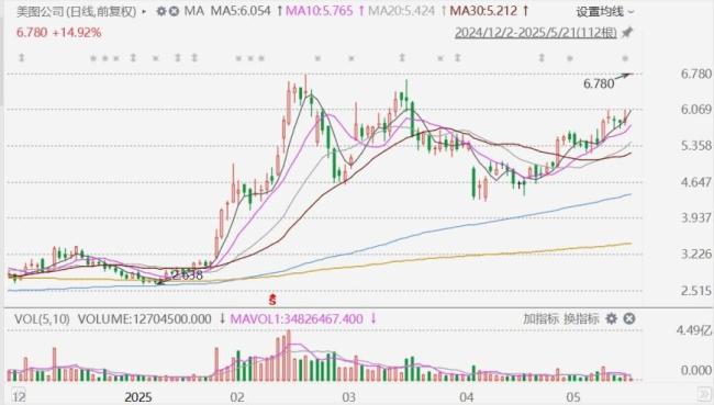 美图(1357.HK)高开14.92%,报6.78港元,股价创2018年6月以来新高。美图宣布与阿里巴巴签署了一份2.5亿美元的可转债协议,并将在电商平台、AI技术、云计算等领域展开战略合作。