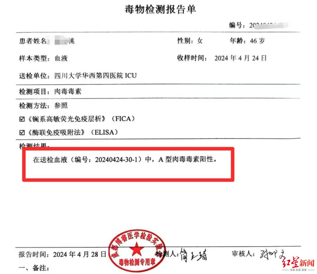 鉴定结果显示肉毒素阳性