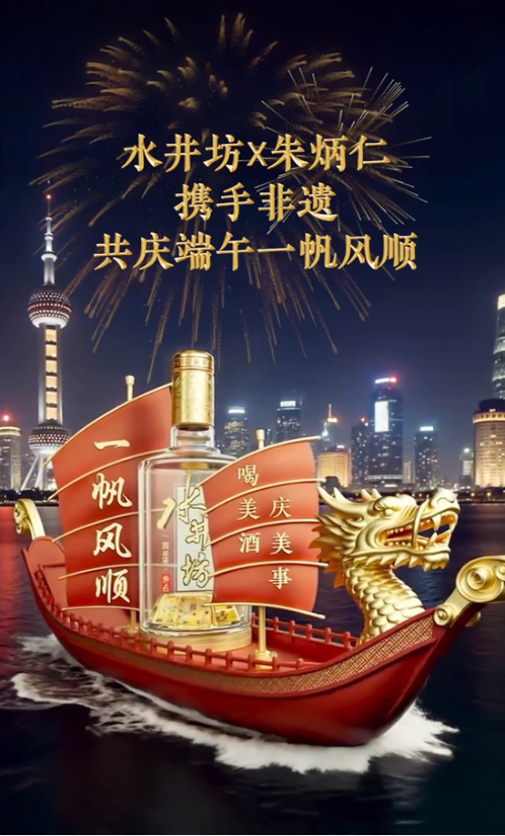 水井坊在端午来临之际,携手非遗大师朱炳仁共同设计“一帆风顺金龙舟”,将“顺意”的美好内涵注入水井坊美酒之中,在华夏大地共同祈愿安康顺遂的美好时节,让象征着一帆风顺的龙舟满载“高品质、高颜值、深内涵”的美酒,“驶”入千家万户,为每一个欢聚共庆的美好时刻,带来独一无二的节日体验与端午祝愿。