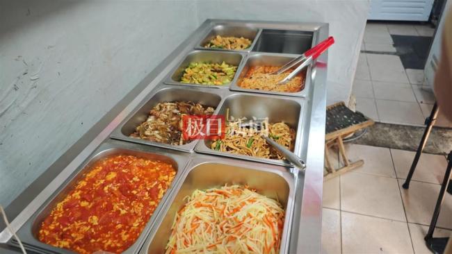 这家备受热捧的小店位于巷子里,面积约10平方米。厨房和打菜区分别位于里屋和外屋。店主孟先生一边炒菜一边通过手机直播与网友们互动,即使在闷热的环境下,他仍笑容满面。店内只能容纳三个人就显得很拥挤了。