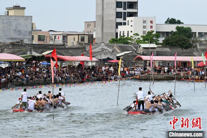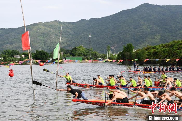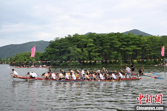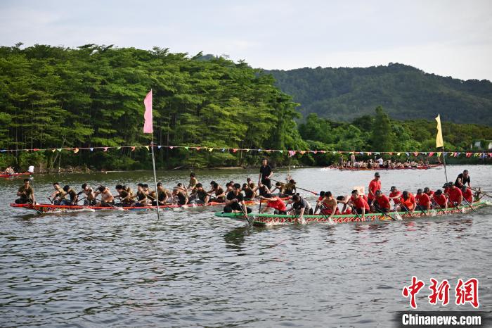 6月2日,端午节假期期间,广东省揭阳市西淇村举办赛龙舟活动,吸引不少村民参赛,感受划龙舟的“速度与激情”。中新社记者 陈楚红 摄