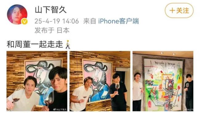4月19日,山下智久也在社交平台上晒出了与周杰伦的合影,并配文:和周董一起走走。不少网友对此表示期待,希望两人未来能有合作机会。