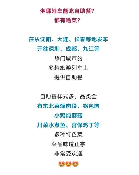 没错,你没听错。随着银发经济的兴起,银发旅游列车越来越受欢迎。中国铁路沈阳局集团有限公司最近创新餐饮服务模式,在银发旅游列车上供应自助餐。这一举措一经推出,就受到了广大旅客的好评。