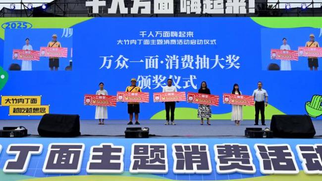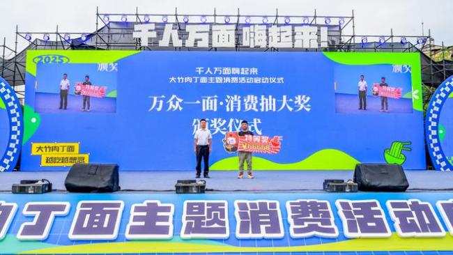 男子吃面喜中特等奖66666元 意外之喜引发关注!6月4日下午,大竹县东湖广场举行了一场备受关注的“万众一面”消费抽大奖活动。该活动旨在挖掘大竹肉丁面的文化价值,拓展其作为产业标志的发展潜力,并通过宣传扩大这一特色县域品牌的影响力,同时借助消费季活动激发消费活力。