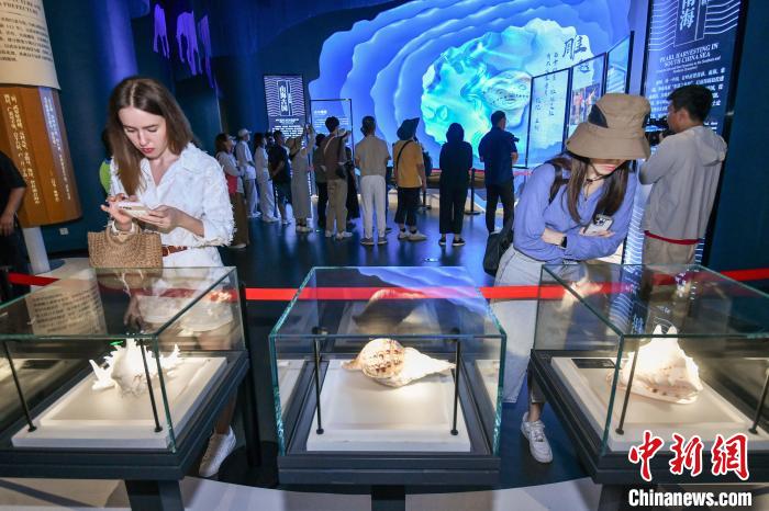 6月8日,海南陵水,海南疍家博物馆展出的唐冠螺、千手螺等吸引参观者。中新社记者 骆云飞 摄