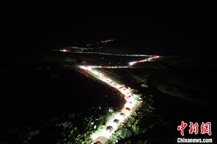 6月8日凌晨,蜿蜒崎岖的盘山路因祭祀敖包的队伍宛若游龙。崔博群 摄