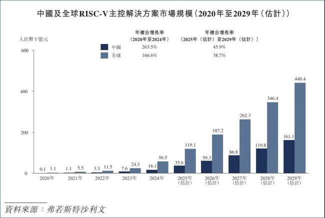 显而易见,RISC-V主控芯片具有广泛的市场前景。据弗若斯特沙利文数据显示,至2029年,全球RISC-V主控芯片市场规模将达到4400亿元;其中中国市场为1610亿元,2025至2029年复合增长率预计为38.7%。另外,SHD集团报告显示,RISC-V MCU车机芯片、AI设备芯片增长速度最快,是需要着重布局的细分市场。