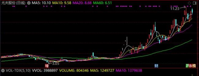 行情显示,3月21日以来,尤夫股份股价已由4.33元/股上涨至10.52元/股,期间多次犀利拉升,涨停21次,累计涨幅达163.94%。如此涨幅下,公司市值也由38.83亿元跨越式增长至102.29亿元。