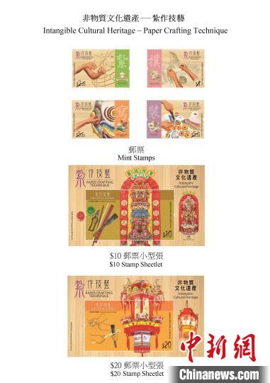 6月11日,香港邮政宣布将于6月26日发行以“非物质文化遗产——扎作技艺”为题的特别邮票及相关邮品。图为邮票和邮票小型张。(香港特区政府新闻处供图)