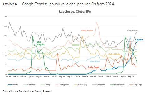 泡泡玛特的海外爆发式增长主要归功于社交媒体的带动效应。2024年初,韩国女团BLACKPINK成员Lisa在社交媒体展示其泡泡玛特藏品后,Labubu等产品迅速成为现象级爆款。全球名人及影响者的自发推广,配合消费者在实体店外排队的视频病毒式传播,助推其品牌热度飙升。Google Trends数据显示,Labubu目前的全球搜索量已达到哈利波特、星球大战和迪士尼等知名IP的同等水平。