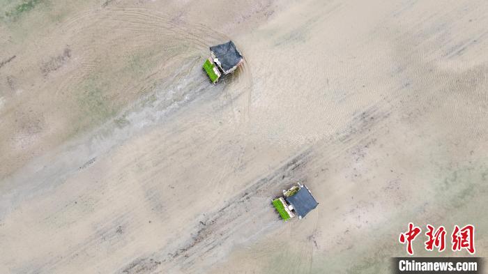 图为湖北省监利市水稻插秧现场。郑子颜 摄