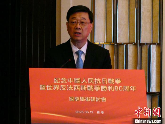 6月12日,“纪念中国人民抗日战争暨世界反法西斯战争胜利80周年”国际学术研讨会在香港举行。图为香港特区行政长官李家超出席并致辞。中新网记者 戴梦岚 摄