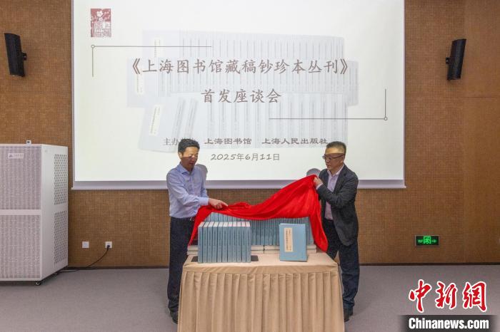 中新网上海6月12日电(记者 王笈)由上海图书馆和上海人民出版社联合主办的《上海图书馆藏稿钞珍本丛刊》首发座谈会11日在上海图书馆东馆举行,上海图书馆馆长陈超、上海人民出版社社长温泽远共同为新书揭幕。
